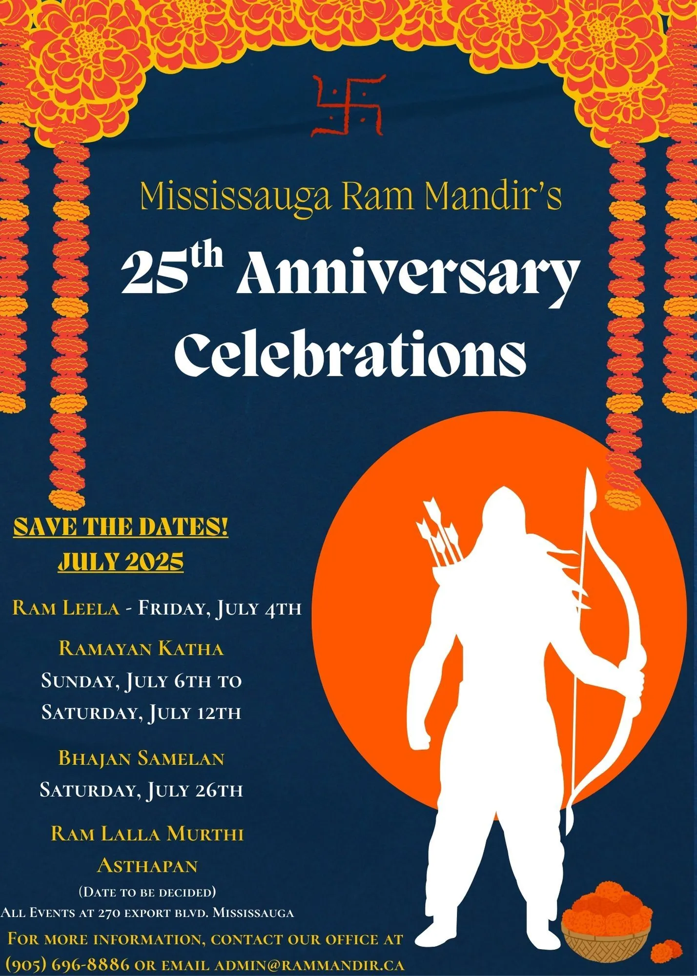 Stay updated on the spiritual calendar led by Pandit Roopnauth Sharma, featuring weekly poojas, bhajans, Aartis, and preetibhoj gatherings throughout July 2025. Sundarkirtan series.